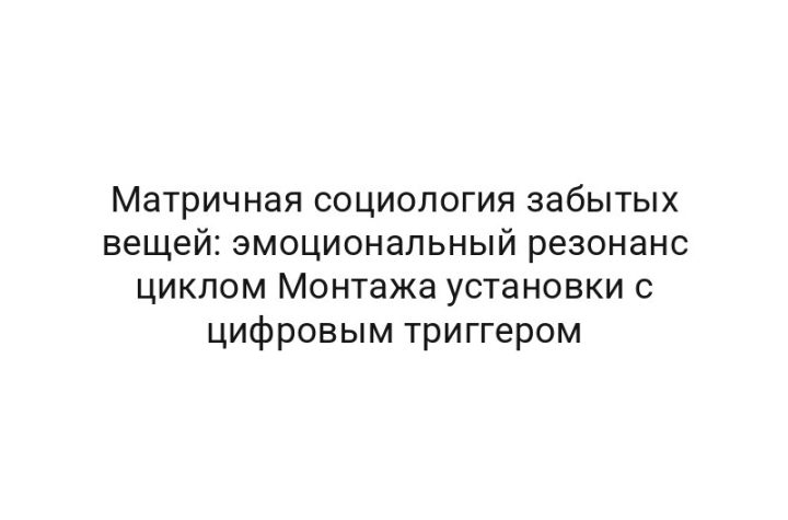 Матричная социология забытых вещей: эмоциональный резонанс циклом Монтажа установки с цифровым триггером